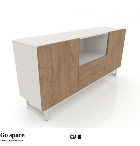 Credenza “Slim ll” con 2 puertas abatible con entrepaño interno, claro organizador sobre cajón papelero al centro. jaladera integrada en puertas y cajón, estructura metálica tubular cuadrado 1″x1″. Fabricada en melamina de 16mm con cantos...
