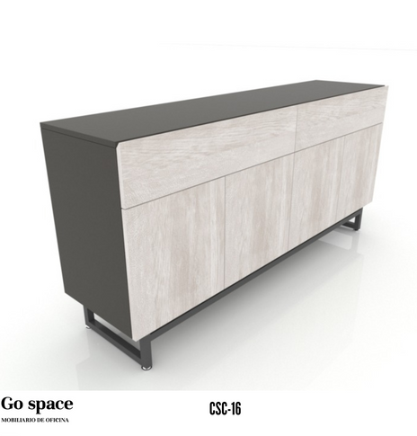 Credenza “Slim l” con 4 puertas abatible, y dos cajones papeleros parte superior, jaladera integrada en puertas y cajones, estructura metálica tubular cuadrado 1″x1″. Fabricada en melamina de 16mm con cantos de PVC, con cerradura.*Frentes...