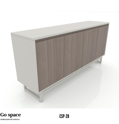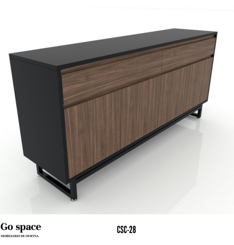 Credenza “Slim 28″ con 4 puertas abatible, y dos cajones papeleros parte superior, jaladera integrada en puertas y cajones, estructura metálica tubular cuadrado 1″x1”. Fabricada en melamina de 28mm con cantos en PVC, con cerradura.*Frentes...