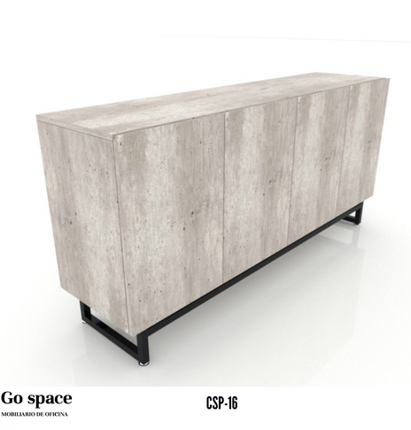 Credenza “Slim 16″ con 4 puertas abatible con entrepaño interno, jaladera integrada en puertas, estructura metálica tubular cuadrado 1″x1”. Fabricada en melamina de 16mm, con cantos de PVC, con cerradura.*Frentes tipo parche. Medidas: 160 de...