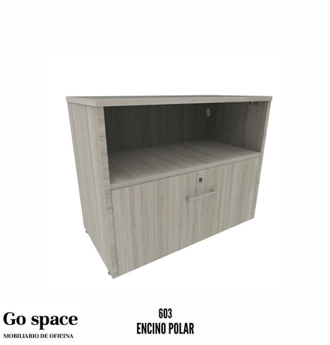 Práctica y resistente Credenza para almacenar materiales de oficina desde papelería hasta objetos personales. Es un elemento indispensable para cualquier oficina, gracias a su diseño puede utilizarse como separador en espacios de trabajo como islas...