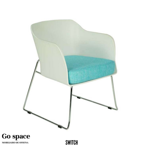 Concha en polipropileno en polipropileno.Cojín desmontable tapizado en tela adisson.Trineo de acero cromado cold roll.
