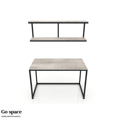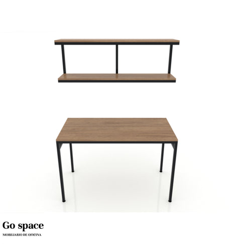 Escritorio y repisa “Gala” cubierta de melamina 16mm. con canto PVC, estructura metálica tubular cuadrada de 1″ y nivelador de altura ajustable. Escritorio: 120 de fr x 60 de fo x 75 al cms.Repisa: 120...
