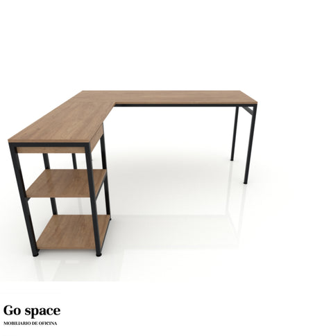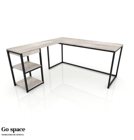 Conjunto secretarial en L “Gala” escritorio y lateral con 2 entrepaños y cajón lapicero, cubierta en melamina de 16mm. con canto PVC, estructura metálica tubular cuadrada de 1″ y nivelador de altura ajustable. Escritorio: 160...