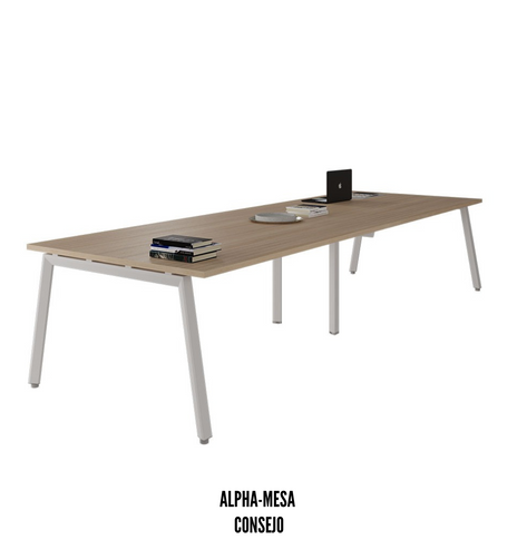 Tech alpha silver o alpha white mesa de consejo con medida de 3.60 x 1.20 (2 cubiertas de 1.80 x 1.20) con base metálica importada en acabado pintura color gris o blanco, en melamina. Medida: 3.60...