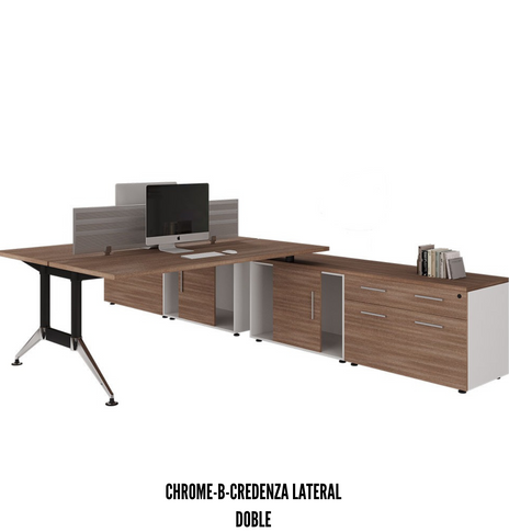 Tech z/chrome o z/white ejecutivo con peninsula de 1.80 x 0.80 con estructura metálica importada en acabado cromo o acabado pintura color blanco, sin pantalla, credenza baja lateral de 1.80 x 0.50 x 0.63 de...