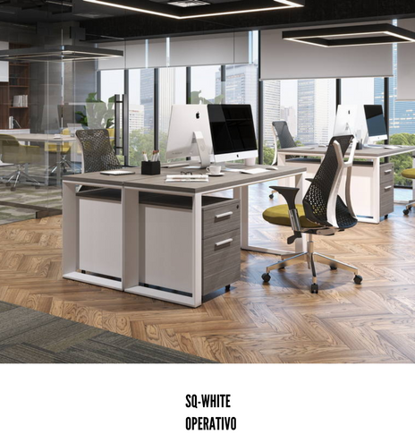 Tech sq/silver o sq/white operativo de 1.60 x 0.60 con base metálica importada en acabado pintura color gris o blanca, con esquineros metálicos cromados, sin pantalla, en melamina. *No incluye archivero* Medida Individual: 1.60 de frente...