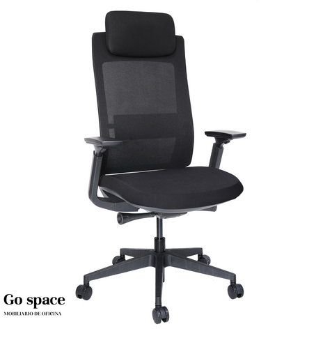 Mecanismo reclinable con regulación de tensión. Descansabrazos de polipropileno color negro, con pad de poliuretano inyectado y ajuste de altura. Cabecera con ajuste 2D, que controla su inclinación y altura. Respaldo ergonómico con soporte lumbar...