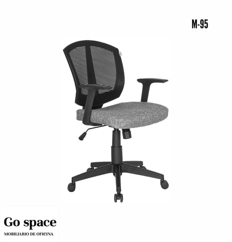 RESPALDO- Marco en polipropileno de color negro o blanco, tapizado en malla tipo poliester en color negro.ASIENTO- Tapizado en tela color negro, hule espuma es espesor de 5 cms. en d. 45 kgs/m³RODAJAS- Tipo yoyo...
