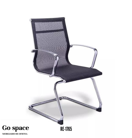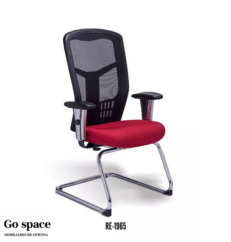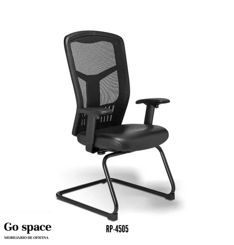 Sillón ejecutivo de visita respaldo alto en mesh. Descansa brazos con ajuste de altura, asiento ergonómico tapizado y su base en forma de trineo, elaborada en acero tubular redondo cal.14, terminado en cromo.