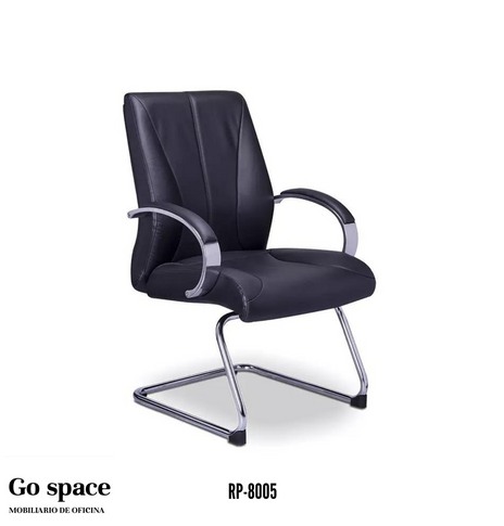 Sillón de visita en piel respaldo medio. Cuenta con base en trineo en acero tubular cromado. Su acojinamiento es en poliuretano inyectado de alta densidad con retardante al fuego y sus brazos son de aluminio...