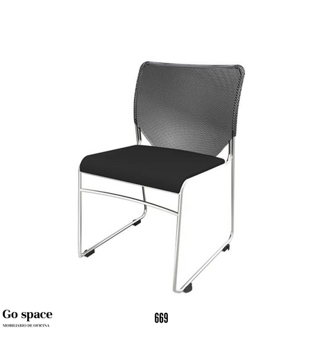Estructura de acero cal. 18 y 16Terminada en pintura epóxica horneadaRespaldo y asiento plásticoEstibableAlto: 80 cm Ancho: 54 cm Prof: 50 cm