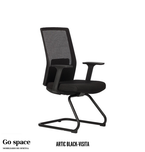 Descansabrazos fijos de polipropileno.Soporte lumbar acojinado y ajustable.Acojinamiento en asiento de poliuretano inyectado.Componente en polipropileno color negro.Tapizada en malla color negro.Base de trineo metálico en color negro.