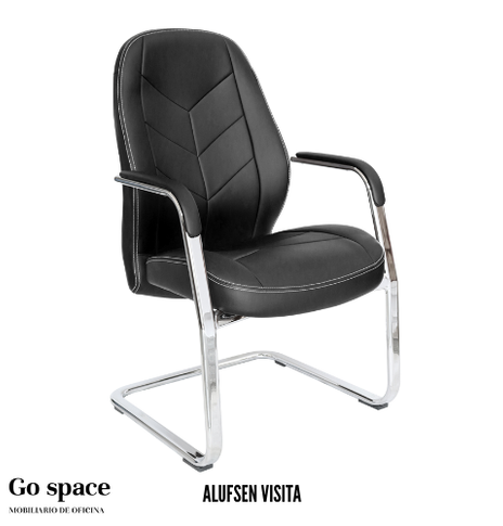 base: trineo de acero tubular rectangular de 1 1/2" X 3/4", calibre 14; con terminado en cromo.brazos: de aluminio fundido y pulidos con terminado natural. Acojinados y tapizados en soft revolving leather color negro.asiento y...