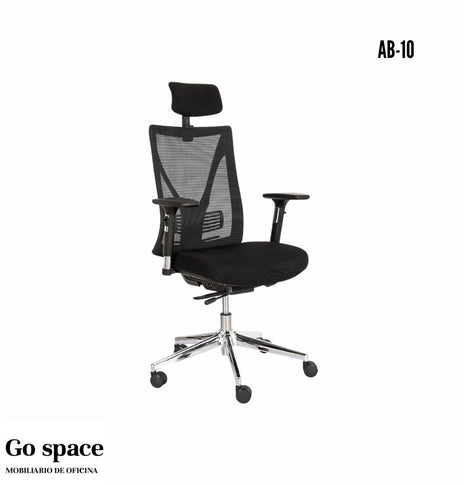 Cabecera ajustable, respaldo en malla color negro y asiento tapizado en tela de su eleccion (consultar catalogo), hule tipo poliuretano de inyeccion d. 45 kg/m³, mecanismo ejecutivo de respaldo reclinable, regulador de tension y cremallera.-...