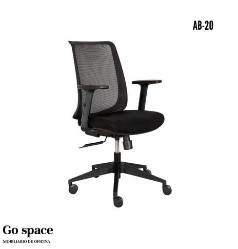 Marco en polipropileno color negro, tapizado en malla únicamente en color negro, asiento tapizado en tela color negro, con tapa de polipropileno, hule espuma inyectado de 5 cms. de espesor d.53 Kgs/m³, pistón ejecutivo, base...