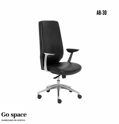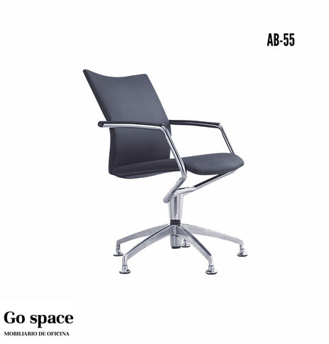 Asiento y respaldo tapizado en vinil negro y con grosor de 1.2 mm., hule espuma con densidad de 45 kgs./m³, estructura en tubo de acero en marco y brazos con grosor de 1.5 cms., piston...