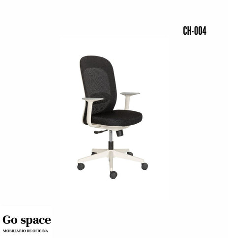 RESPALDO- Respaldo en polipropileno de color blanco, tapizado en malla color negro.ASIENTO- Tapizado en tela color negro y hule en poliuretano inyectado en espesor de 5 cms. d. 55 kgs/m³RODAJAS- Tipo yoyo de nylon con...